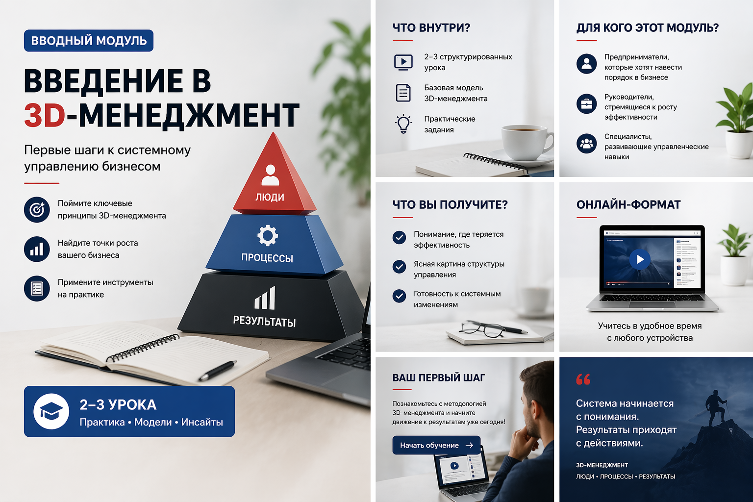 Перейдите к полной программе 3D-менеджмента, где вы выстроите систему управления и внедрите её на практике. Стоимость вводного модуля не вычитается из полной программы.